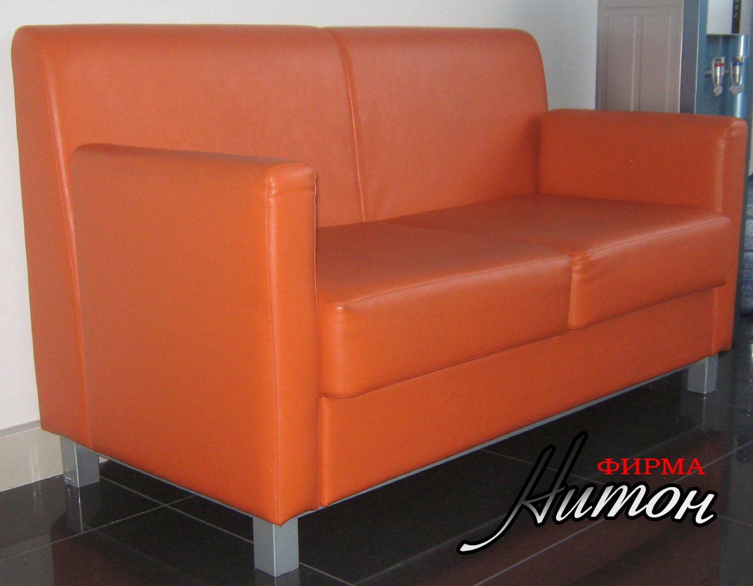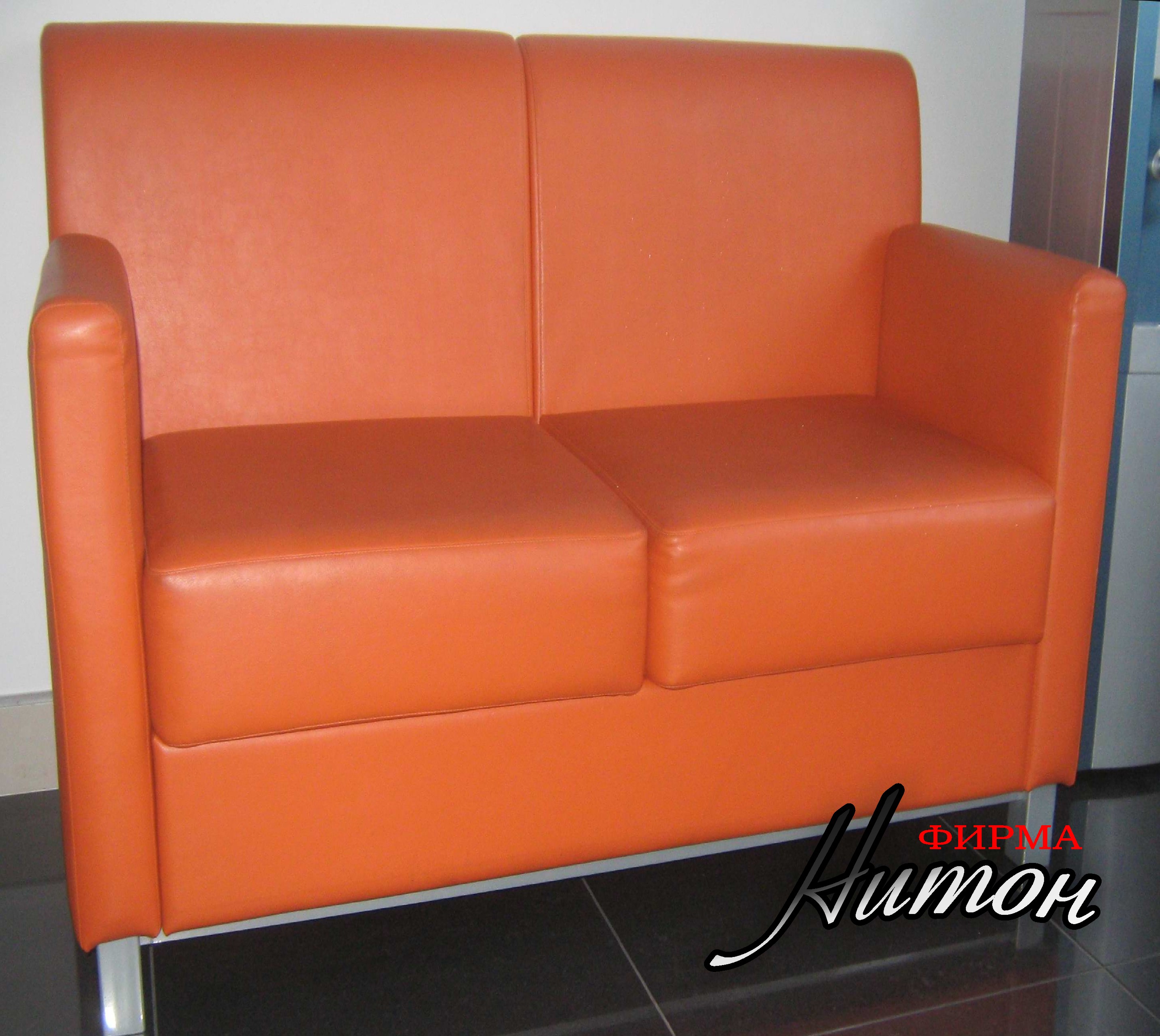 Диваны и мягкие части скамеек изготовлены в соответствии с брэнд-буком для головного офиса и филиалов "Белорусского Народного банка". Материал обивки эко-кожа.