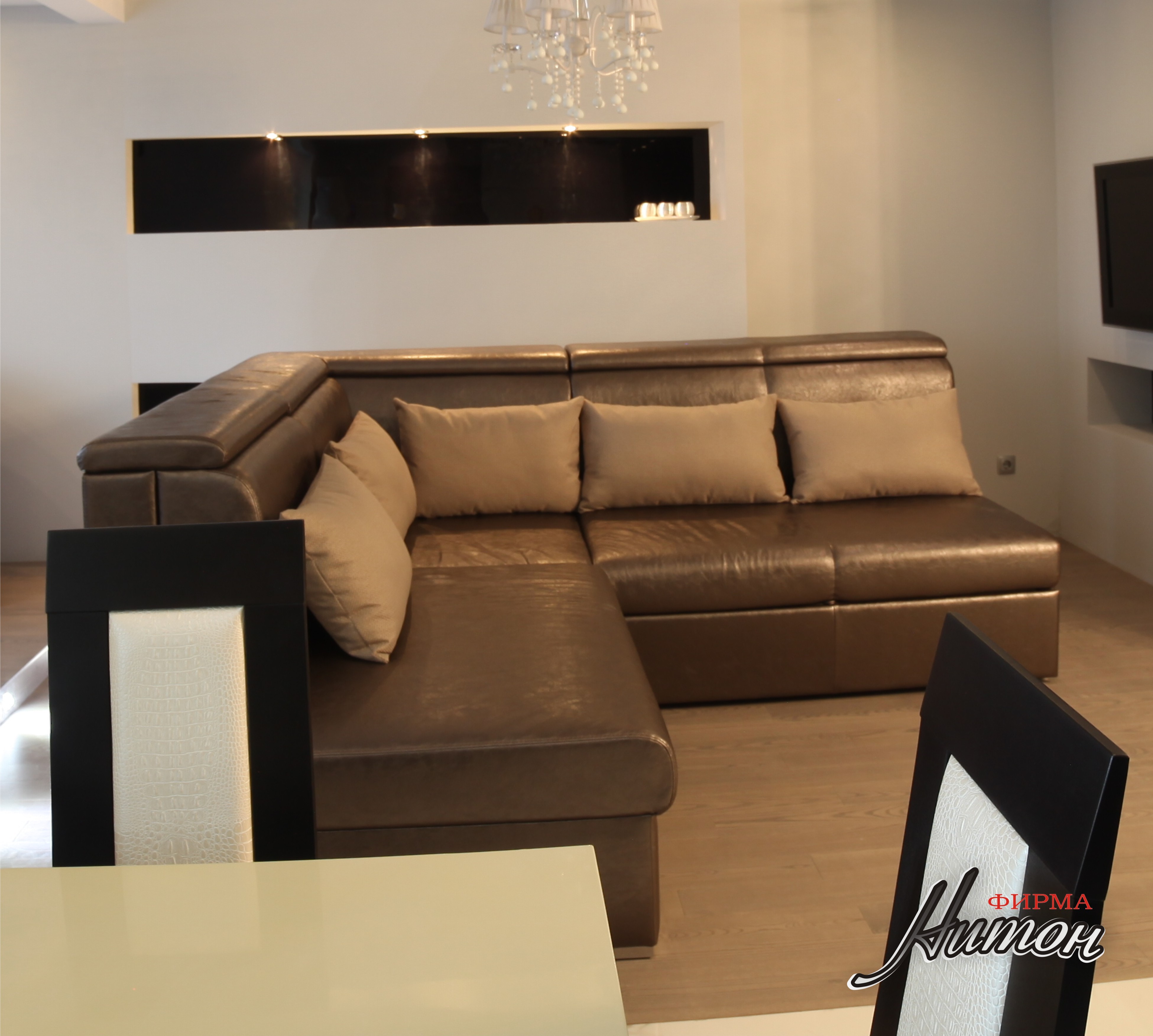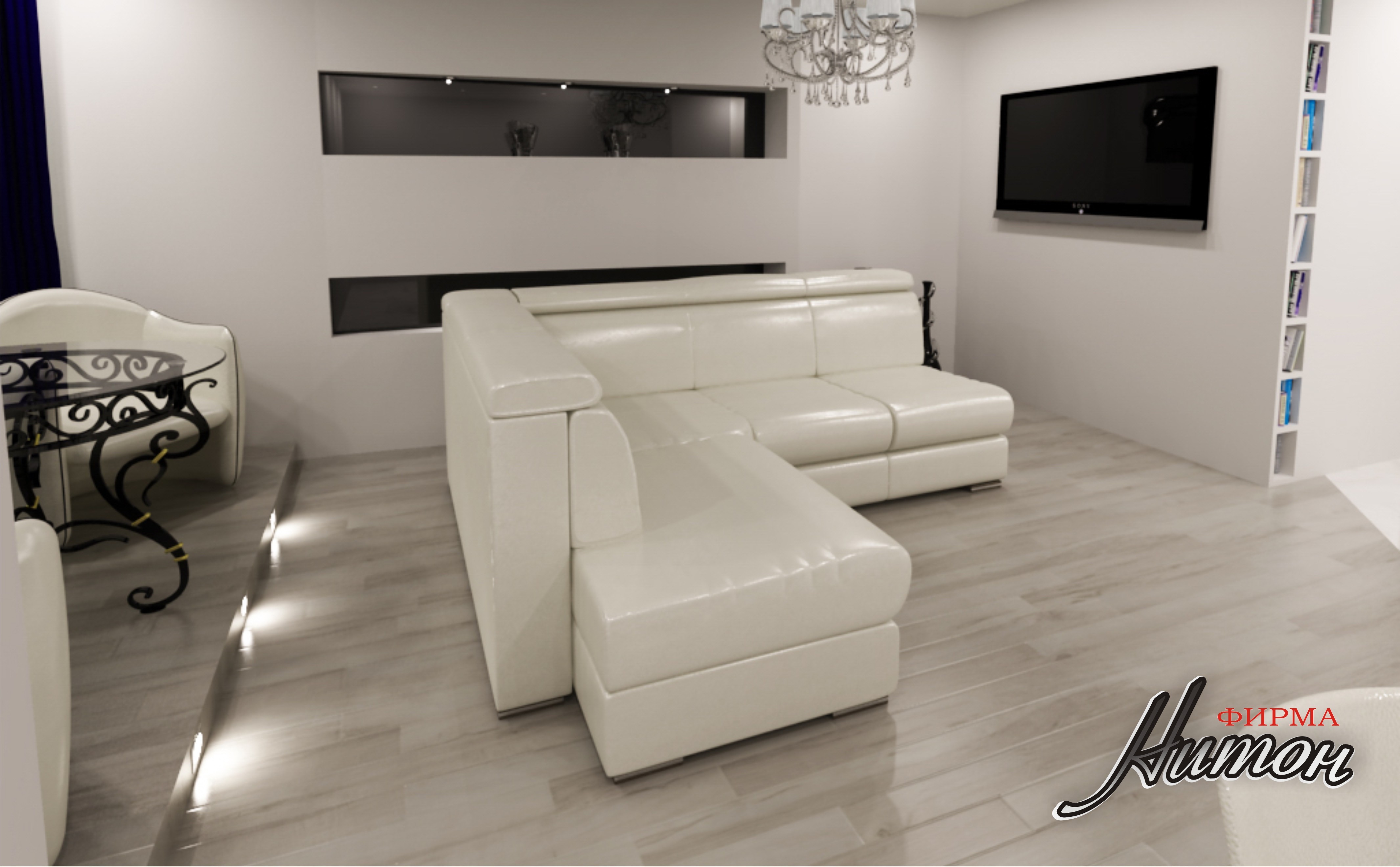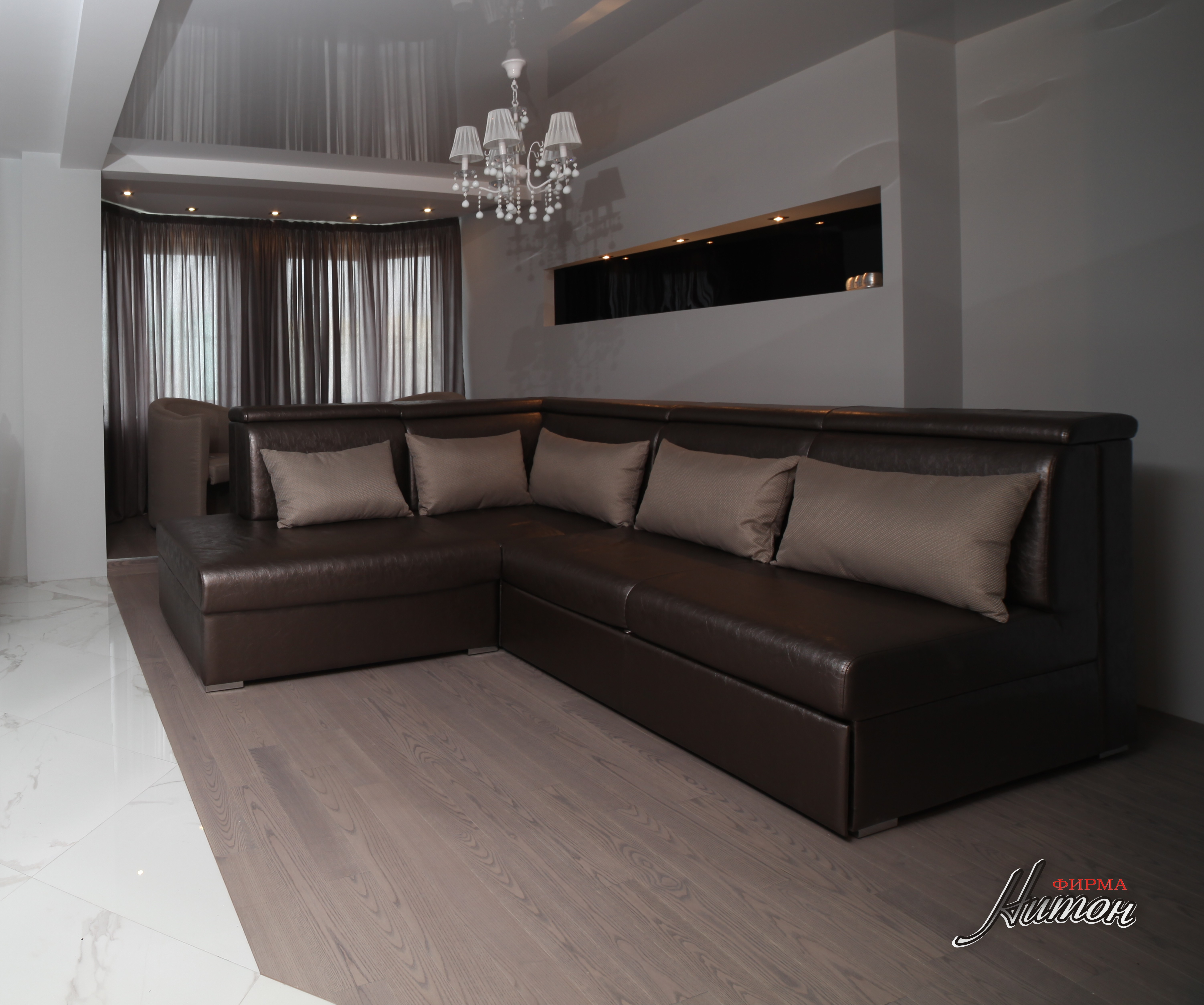 Угловой диван изготовлен по 3D эскизам дизайнера в комплекте со стеновой декоративной панелью (изголовье кровати).