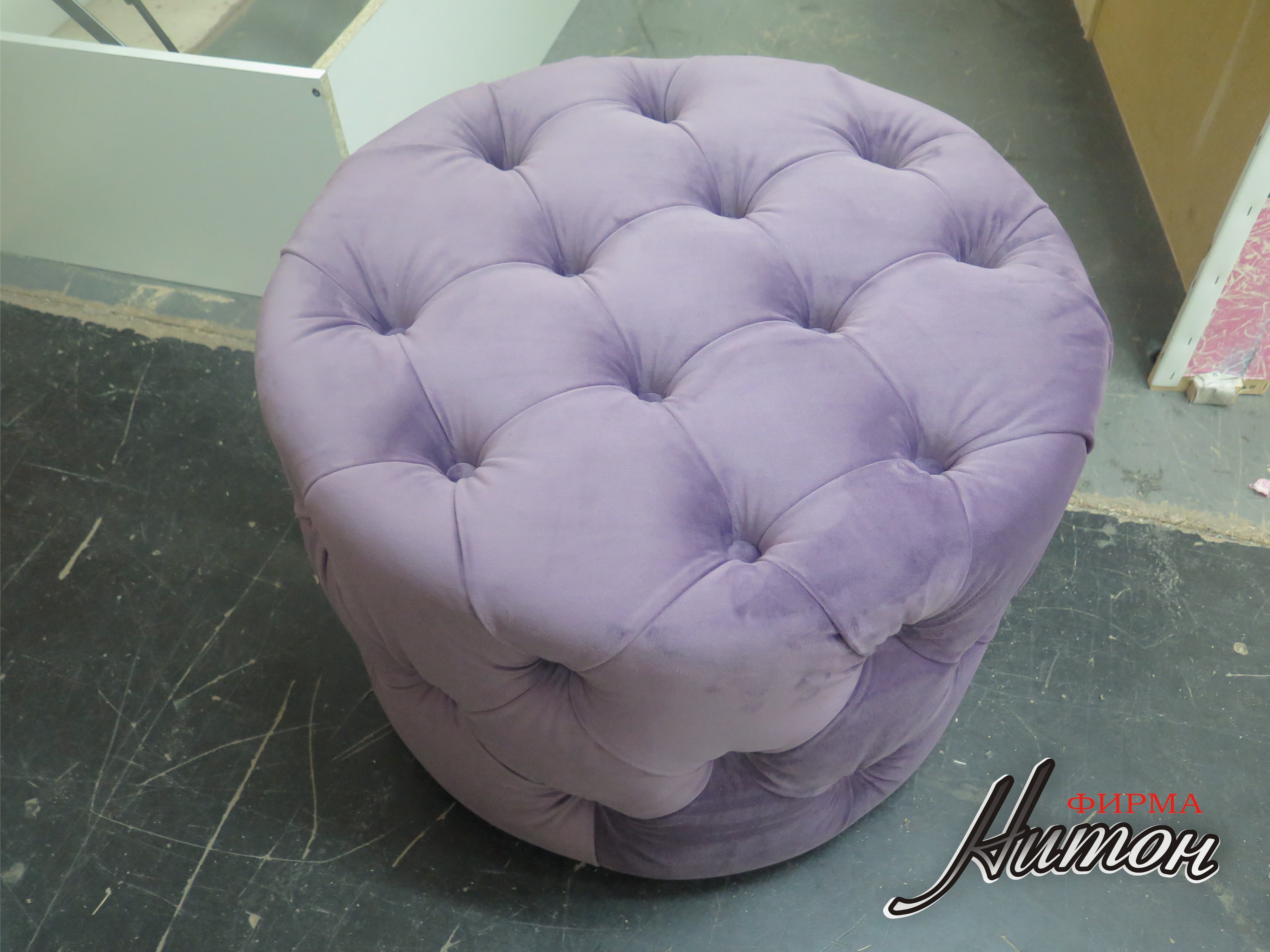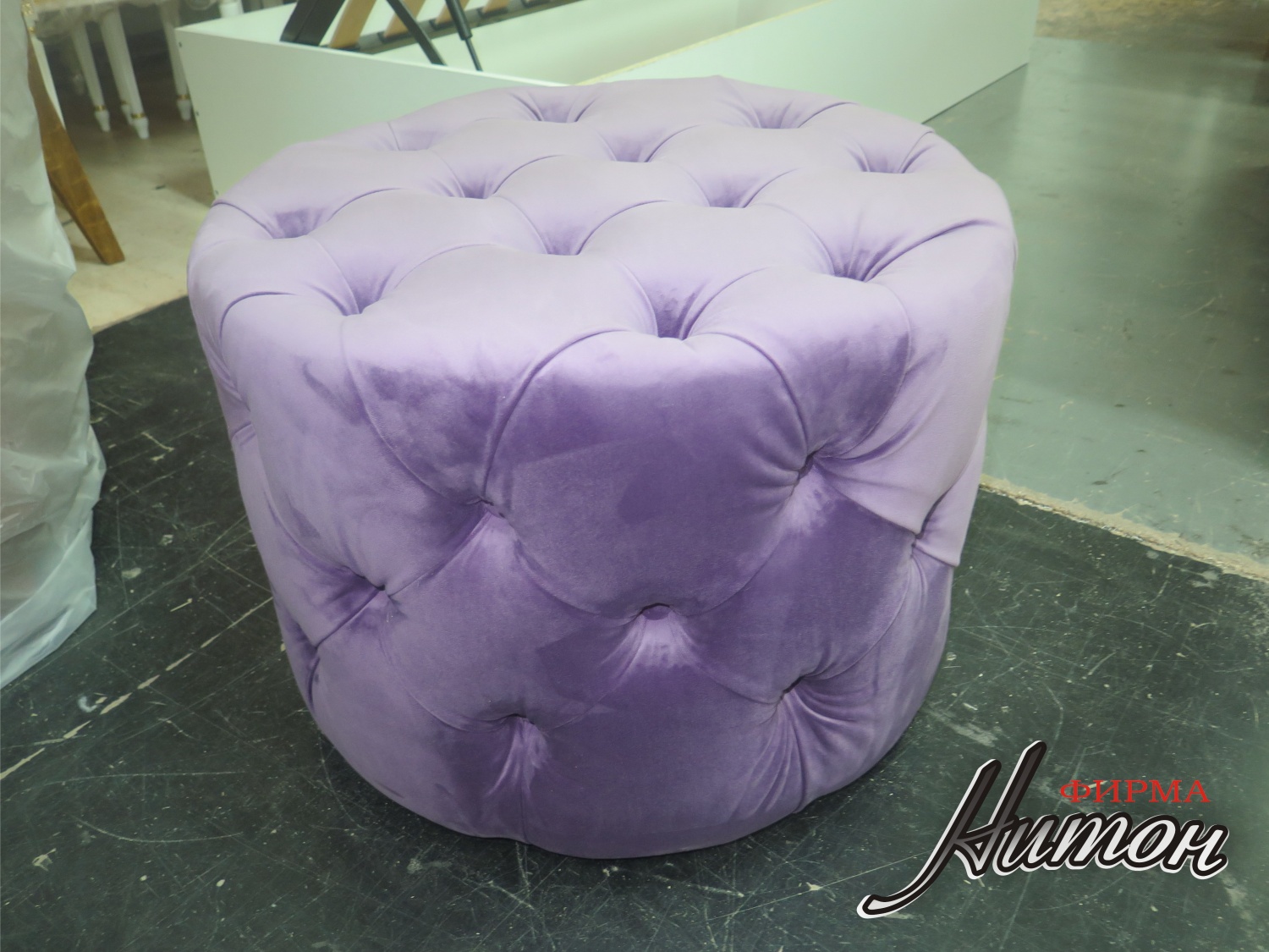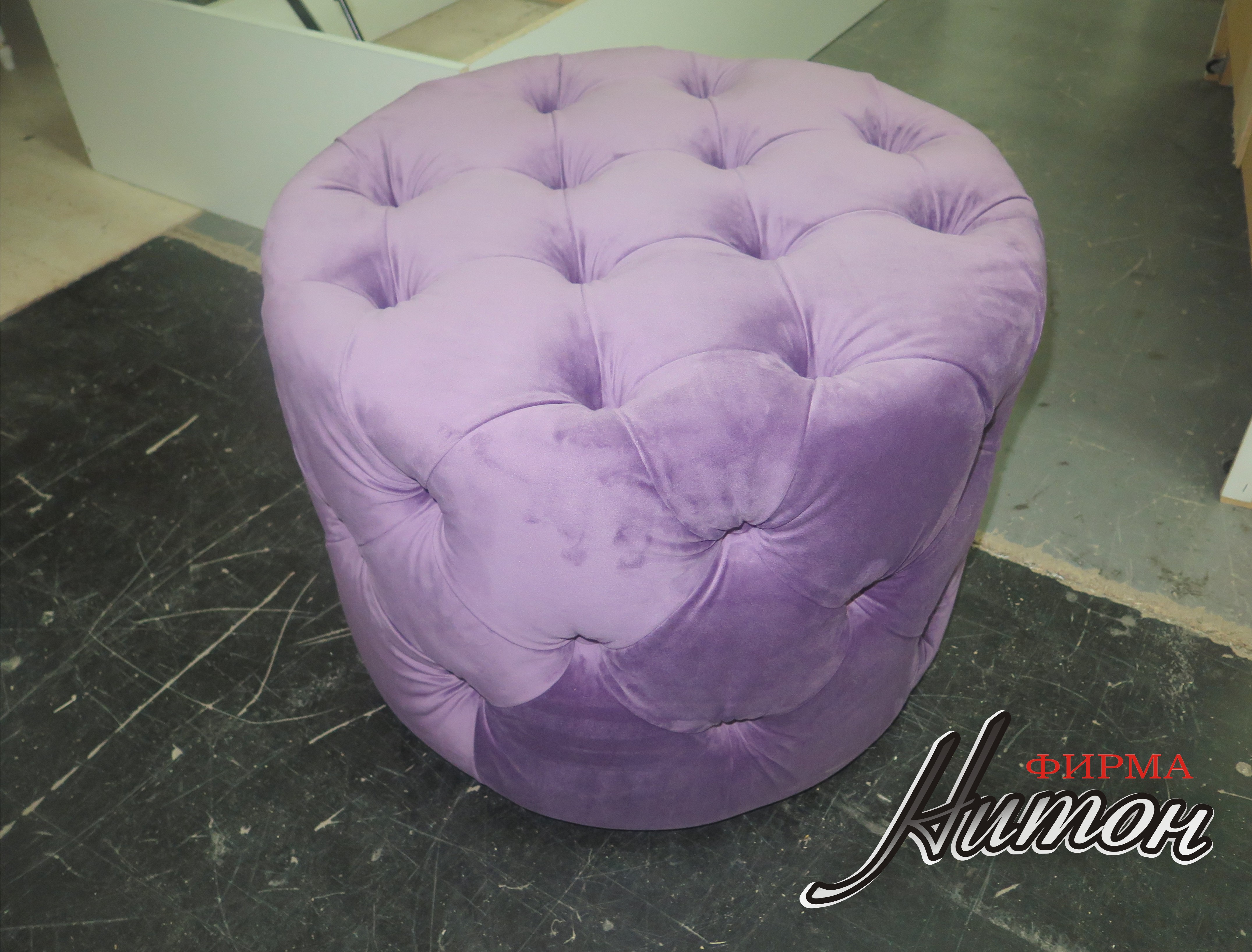 Этот пуф выполнен по эскизам и размерам Заказчика. Диаметр 65 см, высота 45 см. Ткань: бархат.