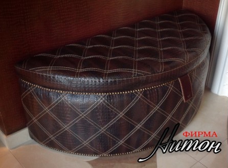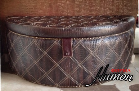 Пуф "Стиляга" полукруглый выполнен из натуральной кожи с двойной прострочкой швов и притяжкой на сидении. Этот большой полукруглый пуф настоящее украшение стильного интерьера частного дома. Большая ниша с удобными доводчиками позволяет активно использовать внутреннее пространство пуфа для хранения вещей.