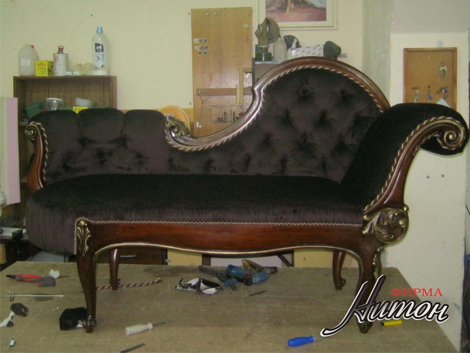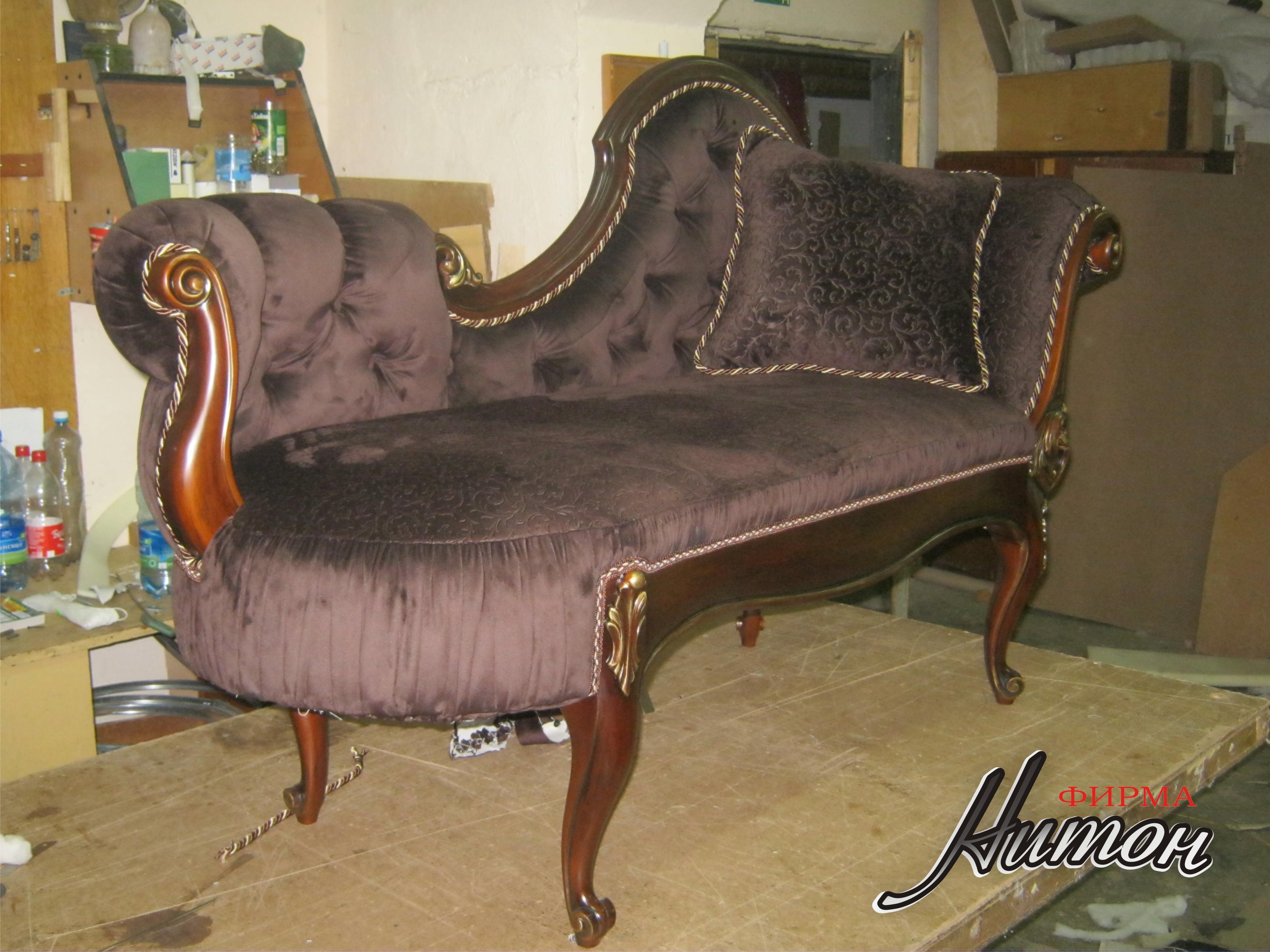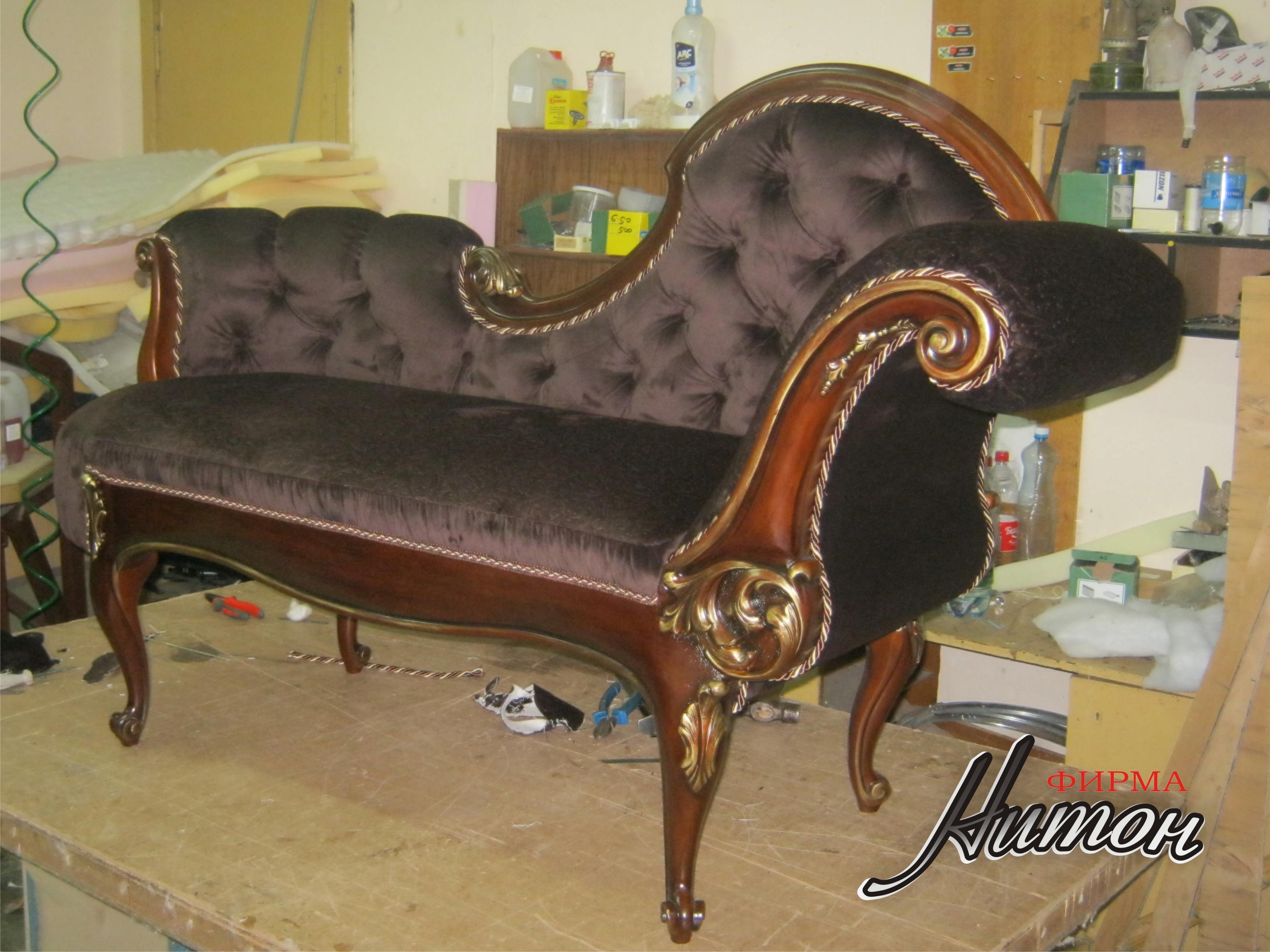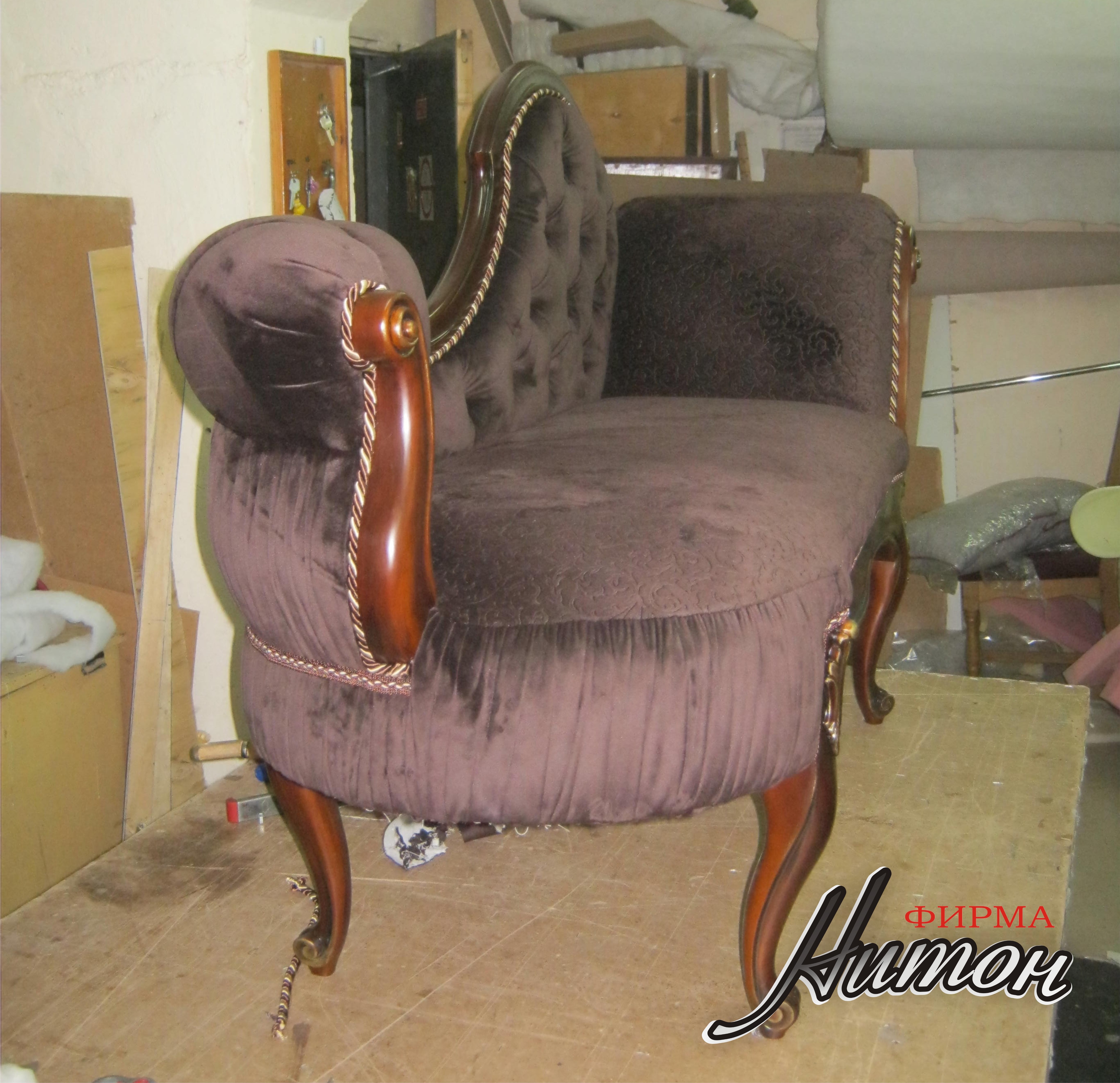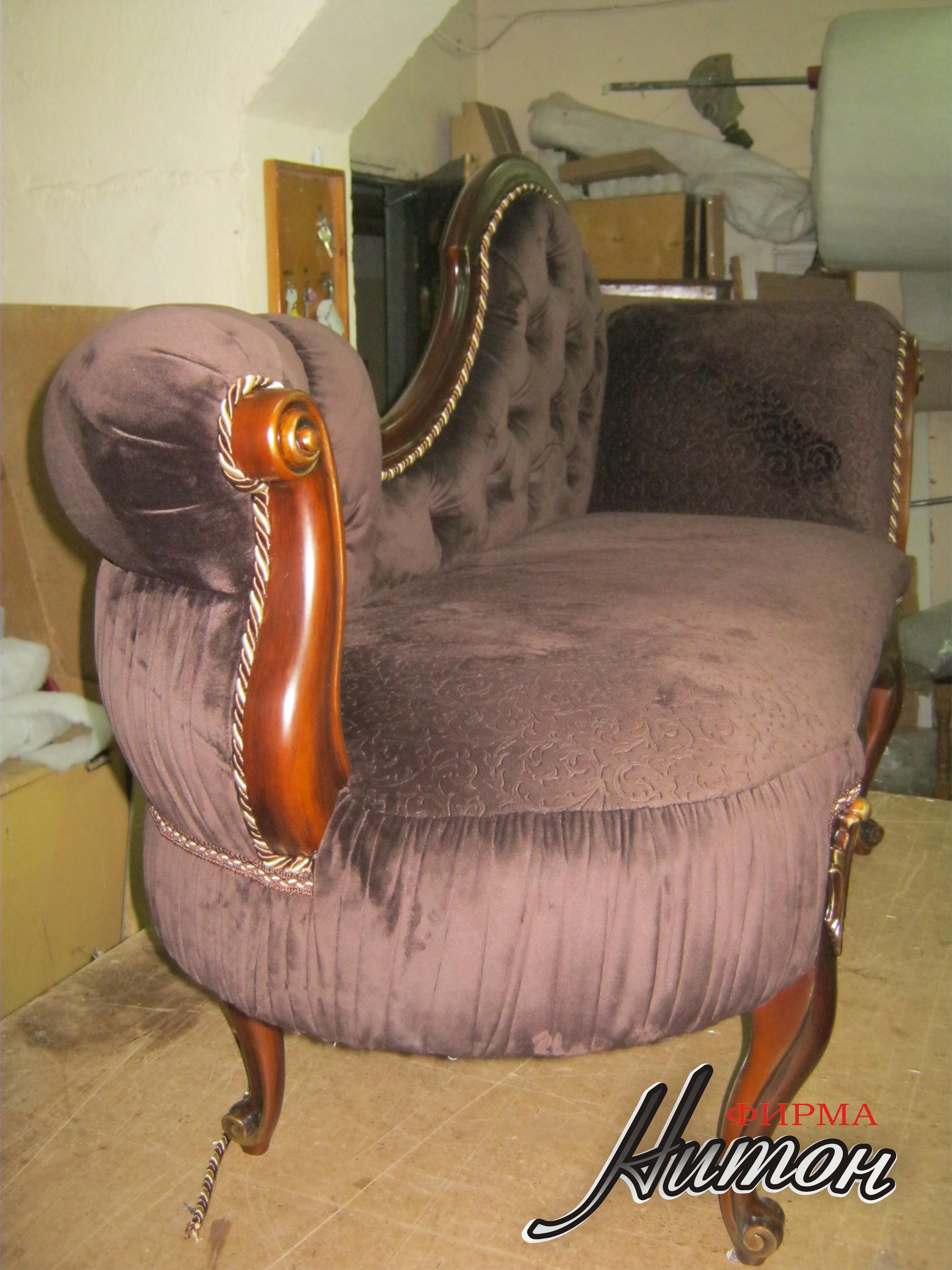 Софа в классическом стиле - результат совместной работы с ПК "Гарант-100". Выполнена по эскизу Заказчика. Каркас и элементы резьбы изготовлены ПК "Гарант-100". В мастерской ООО "Нитон" изготовлены мягкие элементы (наполнитель независимы пружинный блок и высокоэластичный поролон марки HR, обивка и отделка декоративными элементам: тесьма, кант, декоративные пуговицы. Изготовлены декоративные подушки. Сочетание нескольких тканей и способов обивки (пиковка, утяжка, присадка) делают изделие неповторимым. Точно такого же никогда не будет.