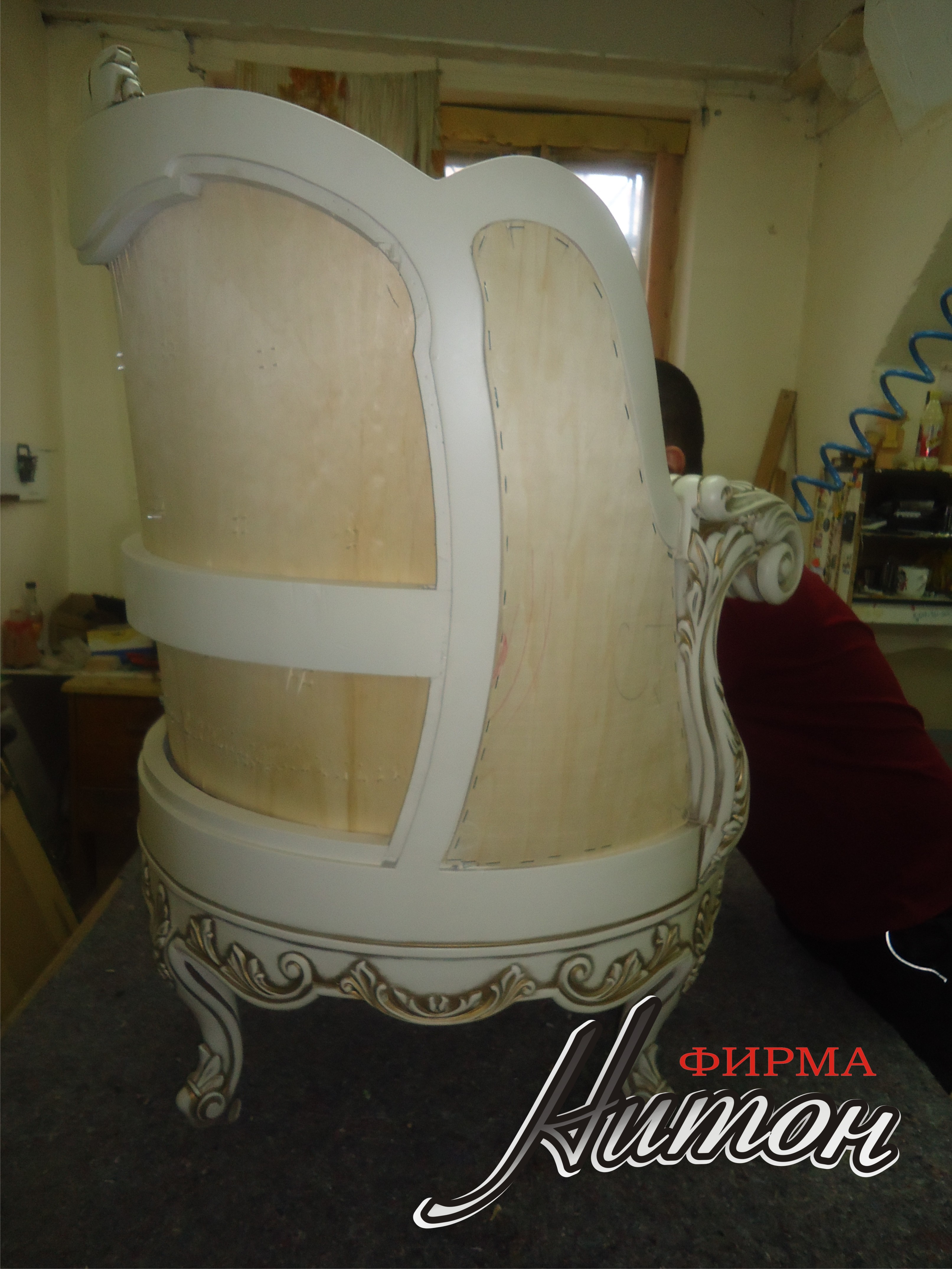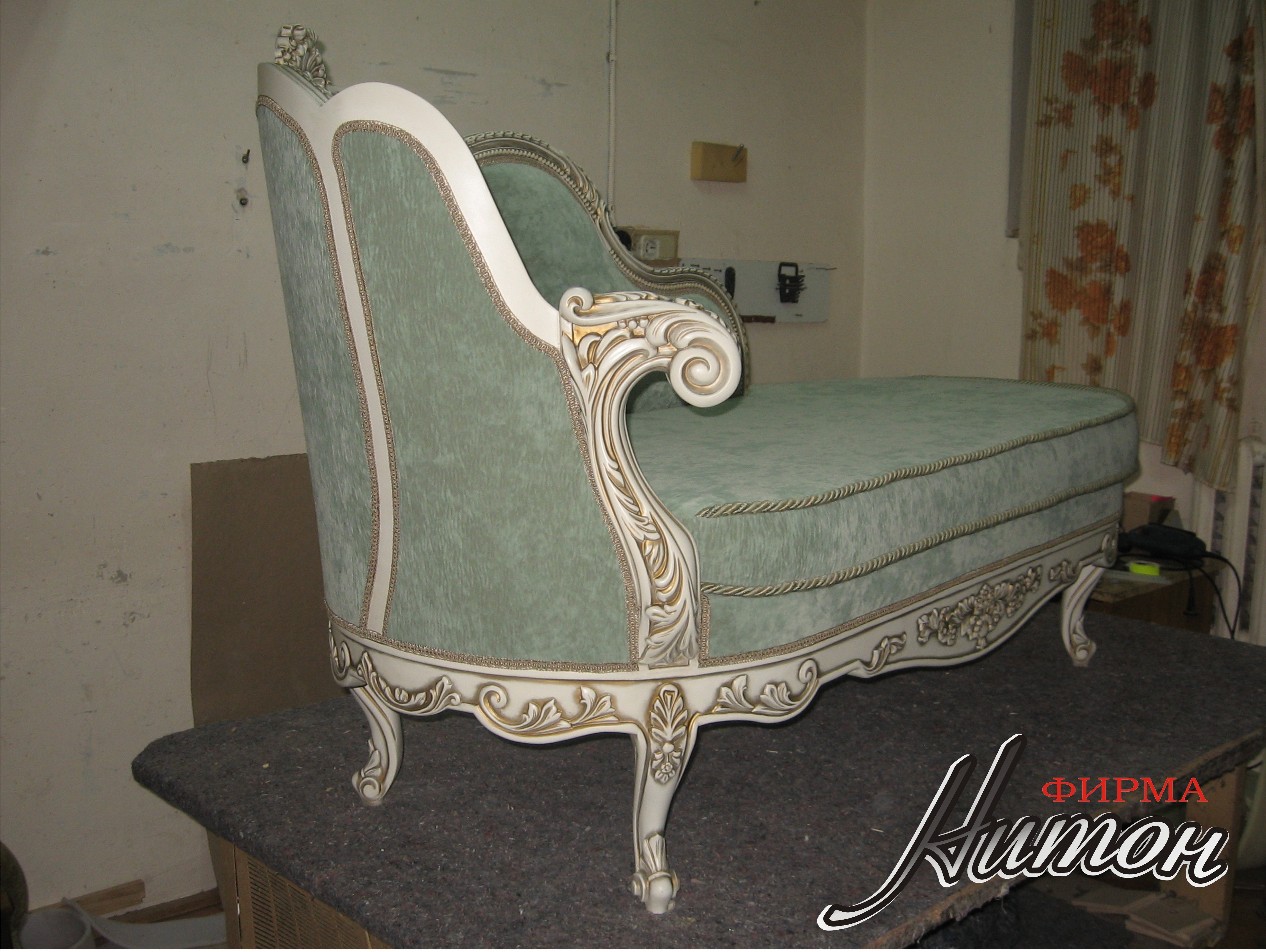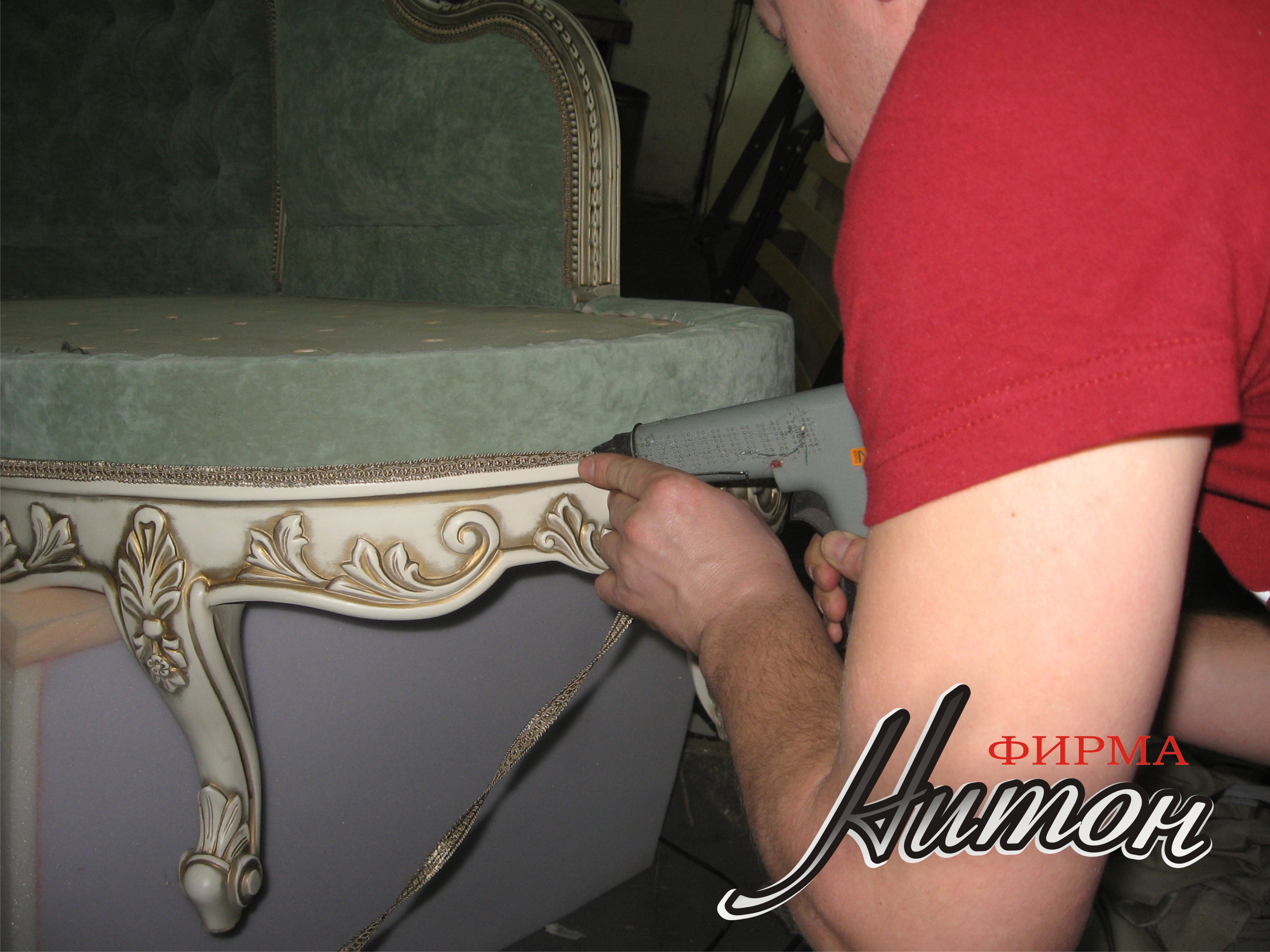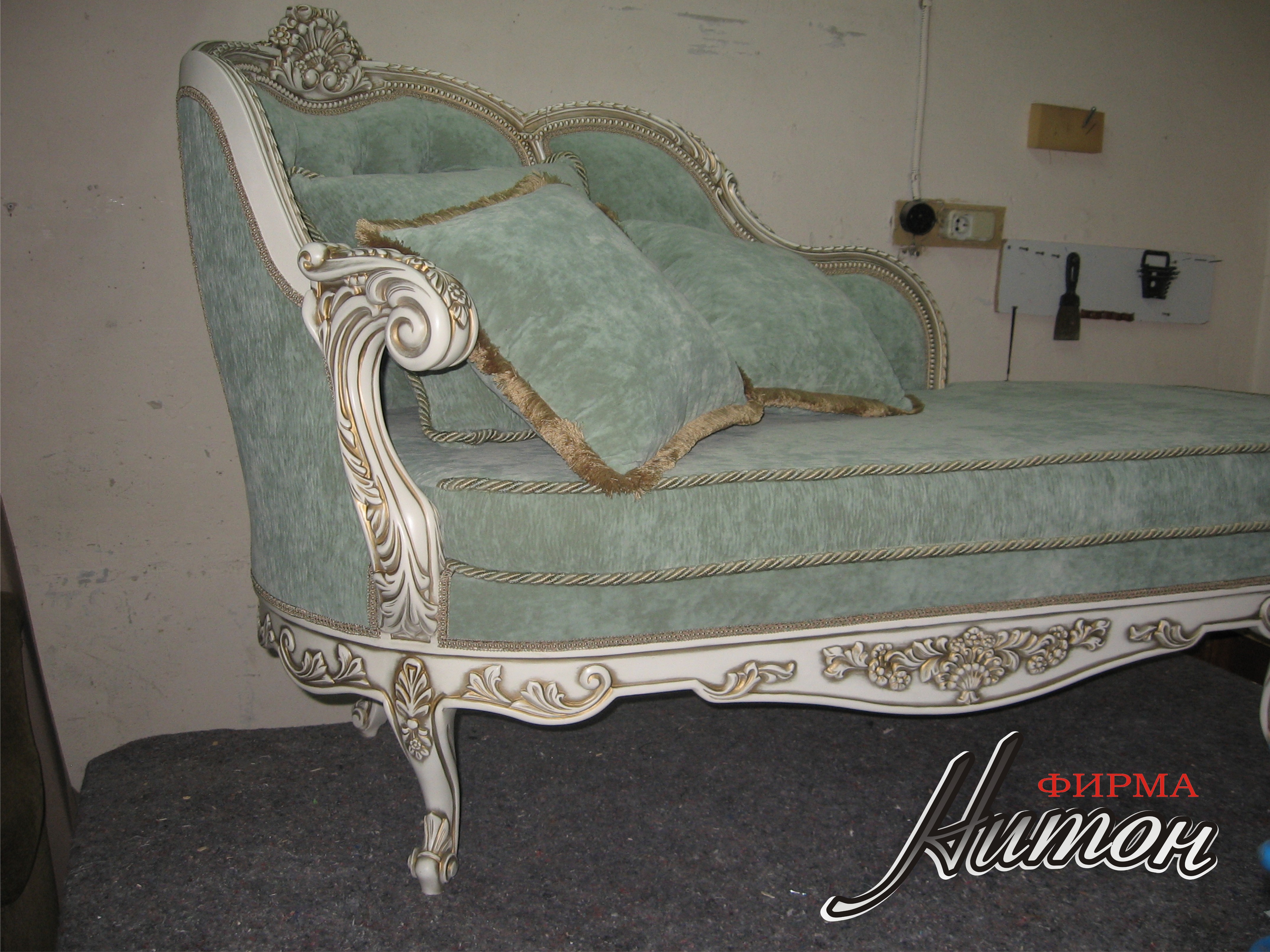 Софа в классическом стиле - результат совместной работы с ПК "Гарант-100". Выполнена по эскизу Заказчика. Каркас софы и элементы резьбы изготовлены мастерами ПК "Гарант-100". В мастерской ООО "Нитон" изготовлены мягкие элементы (наполнитель независимы пружинный блок и высокоэластичный поролон марки HR),выполнена обивка и отделка декоративными элементам: тесьма, кант, декоративные пуговицы. Изготовлены декоративные подушки. Сочетание нескольких тканей и способов обивки (пиковка, утяжка, присадка) делают изделие неповторимым. Точно такого же не будет никогда.